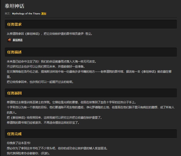 魔兽世界怀旧服血色修道院泰坦神话任务怎么做?WOW怀旧服泰坦神话书在哪儿?