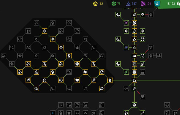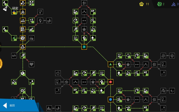 每关获得星星数可以点研究树左侧。我点的基本都对塔有增效的,另外一种点法对技能增效。