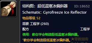 魔兽世界怀旧服超低温寒冰偏斜器图纸在哪购买?WOW怀旧服超低温寒冰偏斜器具体购买坐标。超低温寒冰偏斜器是工程学玩家才能够使用的一款寒冰反射类型的装置,可以增加冰霜抗性还能直接反射冰霜法术。不少工程学玩家不知道在哪儿获得超低温寒冰偏斜器的图纸,下面86就来教大家怎么获取超低温寒冰偏斜器,具体操作如下: