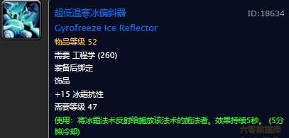 超低温寒冰偏斜器能够增加玩家的15点冰霜抗性,而且可以在使用之后的5秒内反射所有冰霜类法术。