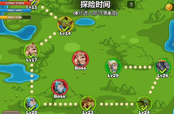boss无视防守专心拆家,卡住了。尽量越级打图,4级打7级图,7级快升8级就打11,打着打着就升级,点了技能就能打的过11级图,血药蓝药常备10个左右 。