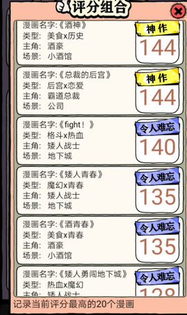 这样出来的就是180,这时候我们把其中一个词条组合换成不那么完美的就又能变多一个神作出来,比如把职场x青春换成职场x热血。