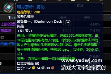 魔兽世界9.0暗月套牌腐化怎么样?怎么做?WOW暗月套牌腐化值得买吗?暗月套牌腐化是魔兽世界玩家们可以izai拍卖行之中购买的一张暗月卡牌,它是玩家们在早期的时候比较容易就能够获得高装等的途径的一件装备,不少的新手玩家们都不是很清楚这款道具是否值得买,小编在这里也给大家带来了一些相关的任务攻略,感兴趣的玩家们不妨对照下面的攻略尝试一下看看吧,具体如下: