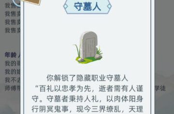 古代人生隐藏职业有多少?各个隐藏职业解锁方法其实大家在古代人生手游中已经触发了不少的隐藏职业了,但是由于触发的时候没有留意之前的流程,所以也就不知道具体的触发方法,小编就在这里给大家分享下自己的游戏心得,关于目前发现的各个隐藏职业的触发方法,比如守墓人、画师、琴师等等,细节如下: