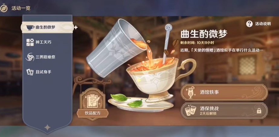 原神曲生酌微梦丽莎怎么做-原神曲生酌微梦丽莎调酒配方攻略原神最新活动曲生酌微梦第二天已开放,很多玩家不知道怎么调配丽莎的配方,本期为大家带来的是原神曲生酌微梦丽莎调酒配方攻略,玩家需要给丽莎做一杯稍=甜的情诗,一起来看看吧。