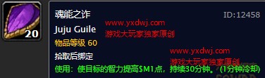 魔兽世界怀旧服枭兽魂精怎么获取?WOW怀旧服法系职业30智力buff魂能之诈在哪里获得?魔兽世界怀旧服枭兽魂精怎么获取?WOW怀旧服法系职业30智力buff魂能之诈在哪里获得?智力一直都是法系职业非常重要的一个buff,可以提升法系职业的蓝条上限以及法术暴击几率,怀旧服中蓝是非常值钱的,所以蓝条上限也就决定了你的输出上限,下面86来教大家拿一个增加30智力的buff,具体操作如下: