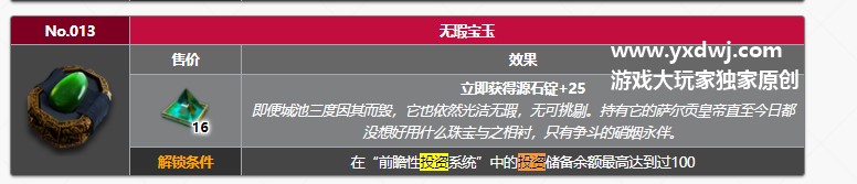 明日方舟无暇宝玉有什么用?明日方舟肉鸽无暇宝玉效果明日方舟的肉鸽前瞻性投资系统里面,我们可以看到根据我们投入的余额不同,在里面解锁的道具也不一样,其中花费的100个解锁的道具无暇宝玉很多玩家就不知道这个道具的具体功能是什么,小便也给大家带来了这个无暇宝玉的效果介绍,希望能够帮助到大家!