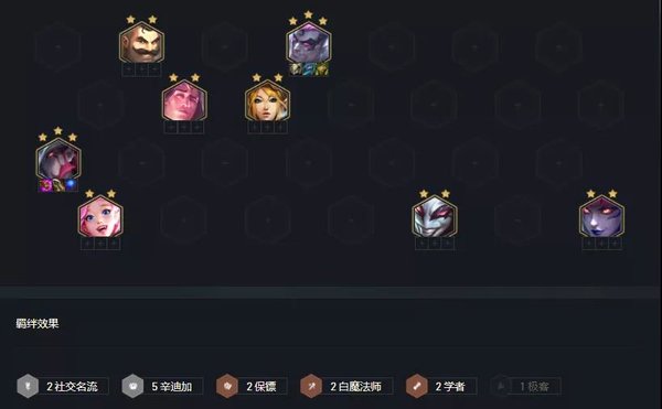 云顶之弈s6辛迪加白学阵容推荐-云顶5辛迪加卡牌阵容玩法攻略这是一套低费赌狗阵容,主要输出点在于崔斯特,双城之战赛季崔斯特只有40法力值,装备上蓝霸符在搭配2学者+2名流羁绊,崔斯特就可1次平A释放一次技能;崔斯特还是辛迪加羁绊,只要凑成5辛迪加就能获得高额双抗与25%的全能吸血,坦度与续航直接就有了。