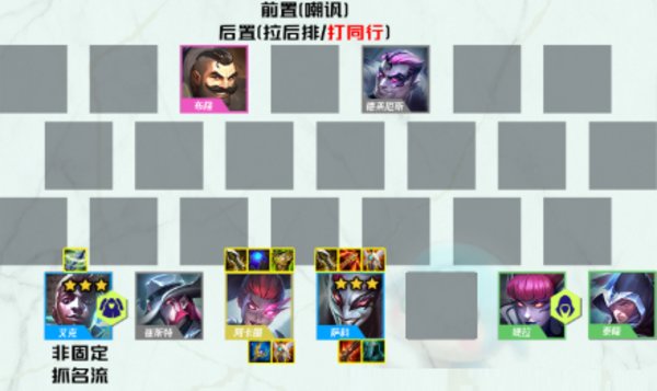 云顶之弈s6不赌辛丑刺阵容推荐-云顶不赌辛丑刺阵容运营攻略假设运气很差没铲子没加辛迪加的海克斯,这套在8人口下掉崔斯特保留5辛4刺,空位单补右下角的任意学者或者任意名流,但通常情况运气好点都能有辛转/加辛迪加的海克斯,这样8人口就上7辛4刺,在这个基础上如果还有刺转,可以给婕拉,把泰隆拆掉,空位补任意学者或名流。