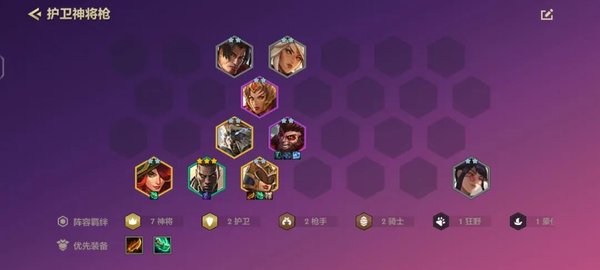 金铲铲之战助手神将护卫枪阵容推荐-金铲铲之战助手护卫神将枪阵容攻略金铲铲之战游戏公测以来,很多玩家们发现可以在游戏中找到很多以前的阵容羁绊,而手游的版本中阵容决定了下限,装备决定上限,只要你的阵容行,再差的装备也能进前四,在这里我们推荐了一套神将护卫枪的阵容,好玩而且运营轻松,吃鸡非常的简单。