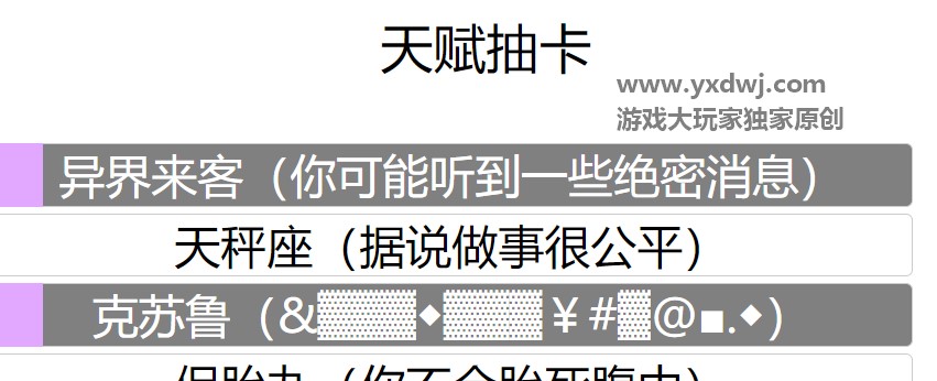 人生重开模拟器克苏鲁有什么用?人生重开模拟器克苏鲁乱码介绍人生重开模拟器中,克苏鲁是一个比较独特的选项,在里面选项的介绍就是一堆乱码,在里面选择了之后你在玩的时候也会出现各种乱码,很多人不知道这个克苏鲁有什么用,小编也给大家带来了这个克苏鲁的功能介绍,希望能够帮助到大家,具体如下: