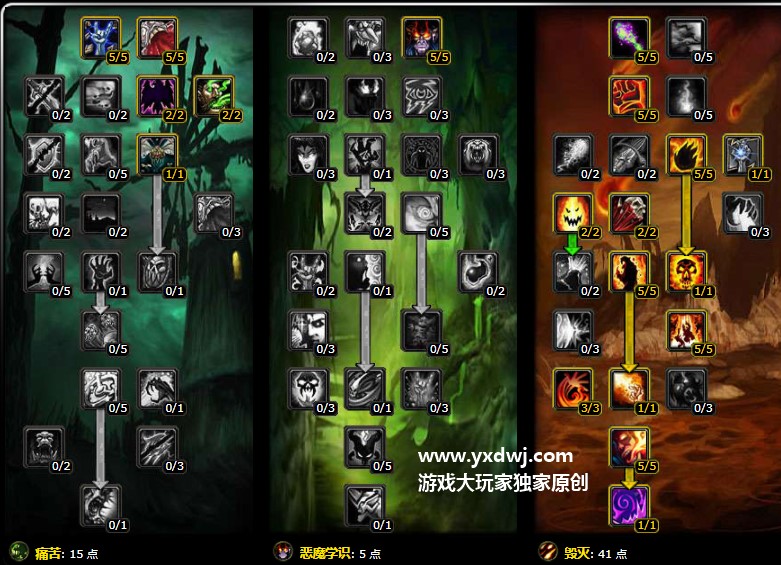 tbc怀旧服术士AA队天赋加点-怀旧服术士AA队怎么加点?AA队益智都是怀旧服里面升级的主旋律,很多的玩家们肯定都对这种玩法非常的熟悉,在里面术士也是AA队的常客,很多的玩家们不知道这个AA队到底要怎么A,小编也给大家带来AA队的正确打开方式,希望能够帮助大家成功的在AA队之中刷副本升级,具体参考下面的配置: