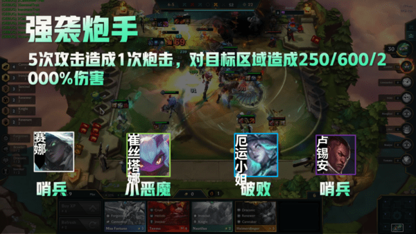 云顶之弈s5.5强袭炮手阵容搭配-云顶4骑士炮手阵容玩法攻略强袭炮手是云顶之弈S5.5中全新的羁绊,在这里搭配骑士可以发挥出最强大的阵容羁绊,强袭炮手的英雄每5次攻击都可以触发一次炮击,对目标单位所在区域进行AOE伤害,是一个完全的四处羁绊,比起以前的枪手的弹射,更好的进行了对棋牌上的清理,非常的强势。