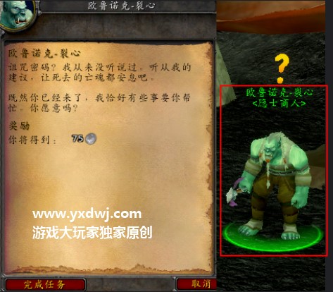 tbc影月谷欧鲁诺克裂心在哪?欧鲁诺克·裂心任务怎么做?欧鲁诺克裂心是影月谷的诅咒密码系列任务,玩家们需要在这个任务之中成功的找到兽人隐士欧鲁诺克裂心,任务提示说这个NPC在库斯卡水池的北方,很多没做过这个任务或者没装这个任务插件的玩家肯定都不知道这个要怎么做,玩家们可以在这里好好参考一下这个欧鲁诺克裂心的坐标,具体完成方式如下: