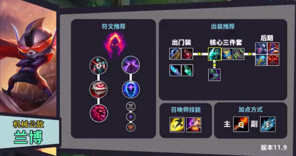 英雄联盟11.9版本博打野天赋推荐2021-lol11.9兰博打野出装推荐攻略在英雄联盟2021msi上RNG的第一把比赛中,wei的兰博打野大放异彩,豪取4杀,作为11.9版本中的最强打野英雄之一,兰博不仅有着高速的刷野效率,而且在打野对拼上有很难找到对手,抓人gank可以很好的和队友进行配合,最大程度上的帮助队友拿到优势,自己也能坦能输出。