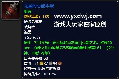 魔兽世界充盈的心能牢狱饰品怎么样?充盈的心能牢狱使用方法介绍充盈的心能牢狱是一款魔兽世界之中赤红深渊里面掉落的饰品,这个饰品比较特殊,不少的玩家们都不是很清楚这个饰品具体来说要怎么用,小臂那在这里也给大家带来了这个饰品的具体解锁攻略,感兴趣的玩家们不妨对照下面的攻略参考一下试试看,有需求的玩家们可以参照一下下面的内容,具体如下: