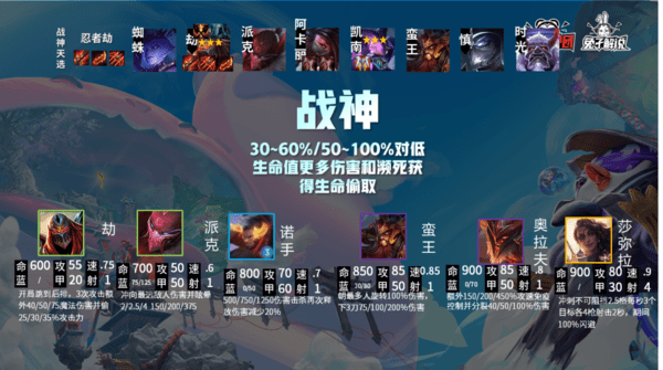 云顶之弈4.5战神忍者决斗劫阵容推荐-云顶4.5忍者战神劫阵容攻略在4.5的版本中,虽然新的棋子非常的亮眼,但是我们的老棋子也不差,小编为大家推荐了这个以劫为核心的阵容战神,腥红忍者决斗劫这个阵容搭配全新的战神羁绊,可以获得高额的伤害和吸血,让劫可以更好的去进行输出,源源不断的恢复,可以说是强大的上分阵容。阵容羁绊战神天选,组成3战神、4忍者、1主宰的羁绊