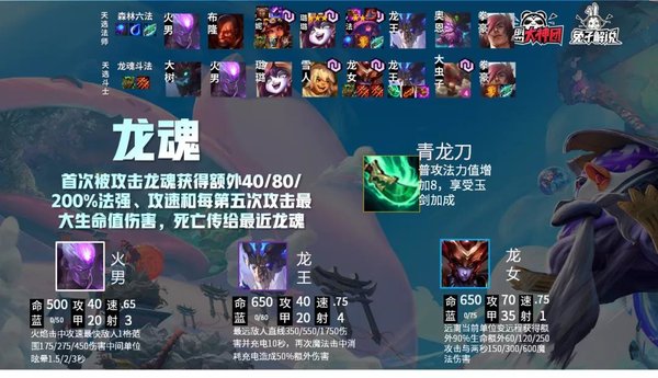 云顶之弈4.5龙魂斗法阵容推荐-云顶之弈4.5双龙斗法阵容攻略全新的4.5版本的云顶之弈中,龙魂羁绊大放异彩,龙女和龙王再次回到我们的云顶之弈中,双龙斗法的阵容可以说比起上个版本的小法来说强大不少,搭配全新强化过的青龙刀,龙王可以一口喷死一条直线上的英雄,不仅上分轻松,而且玩起来特别的爽,赶紧来看看吧。