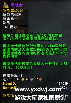 魔兽世界9.0燃魂者饰品怎么用?WOW9.0燃魂者饰品使用方法燃魂者是团本纳斯里亚堡之中的凯尔萨斯之影掉落的一个饰品,饰品和不同的饰品效果不太一样,不少的玩家们都不是很清楚这个饰品要怎么玩,小编在这里也给大家带来了一些详细的燃魂者饰品的使用方法,感兴趣的用户可以对照试试看,具体如下: