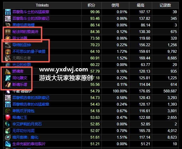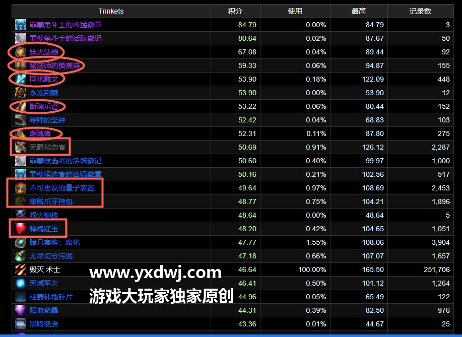 魔兽世界9.0火法饰品怎么选择?WOW9.0火法饰品最新排行火法是目前大秘境排名第一的专精,不少的玩家们也都不是很清楚,目前火法应该如何选择最强的饰品,小编在这里也给大家带来了一些相关的饰品选择攻略,有需求的玩家们呢可以对照着下面的攻略来判断一下什么饰品更合适,感兴趣的玩家们可以参考试试看,具体如下: