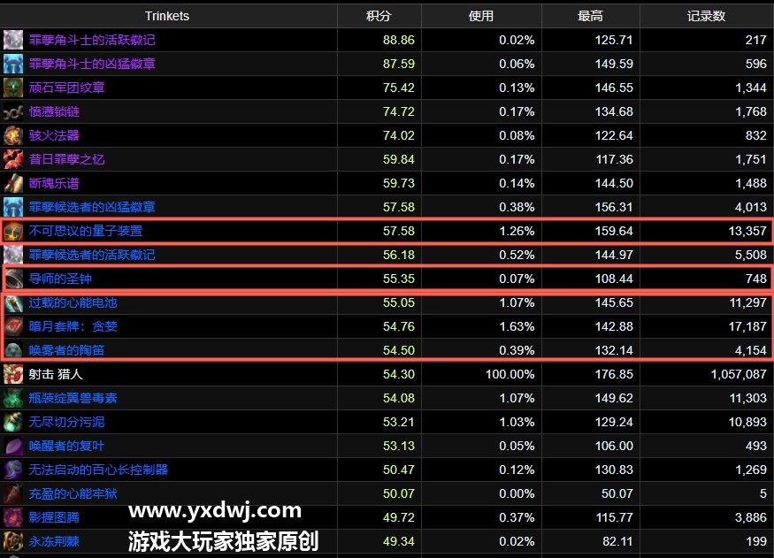 魔兽世界9.0射击猎饰品怎么选择?WOW9.0射击猎最新饰品推荐排行榜射击猎是现在魔兽世界当前版本的几个最强专精之一,不管是大秘境还有团本里面都能够获得比较好的游戏体验,现在也有不少人回来reroll射击猎,小编在这里也给大家带来了射击猎的一些相关的饰品推荐,有需求的玩家们可以尝试考察一下下面的射击猎玩法内容,具体如下: