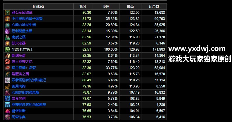 魔兽世界9.0邪DK饰品怎么选择?WOW邪恶死亡骑士饰品选择方法邪DK是目前单体非常厉害的职业,在排名榜上也是经常绰绰有名的,不少的玩家们都会想要reroll这个职业,但是不少的玩家们不是很清楚这个邪DK的饰品要怎么选择,该去哪里刷,小编在这里也给大家带来了相关的攻略,有需求的玩家们呢不妨对照下面的攻略试试看吧,具体如下: