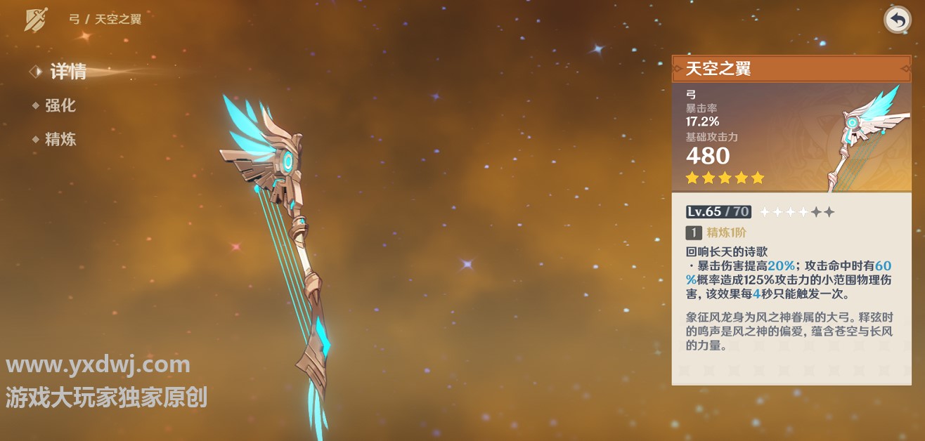 原神天空之翼值得抽吗?原神天空之翼适合谁?原神天空之翼值得抽吗?原神天空之翼适合谁?天空之翼是原神之中11月11号之后更新的武器池子之中的一把五星的弓箭武器,不少的玩家不是很清楚这把武器是否值得抽,拿到武器的玩家可能也会比较困惑,这把武器更适合谁?小编在这里玩也给大家带来了一些比较简略的攻略,有需求的玩家们可以参考一下试试看!