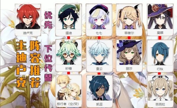 原神迪卢克阵容怎么搭配?迪卢克阵容推荐及分析目前关于原神手游中的迪卢克角色,还是很强的,也有不少玩家比较关心,因为想玩主c,那么阵容应该怎么搭配呢?小编就在这里给大家分析推荐一下,其实卢老爷打主c,刻晴副c这个搭配也是可以的,当然还有玩家用迪卢克,温迪,重云,菲谢尔这个阵容,主要是看自己手中有什么角色吧。